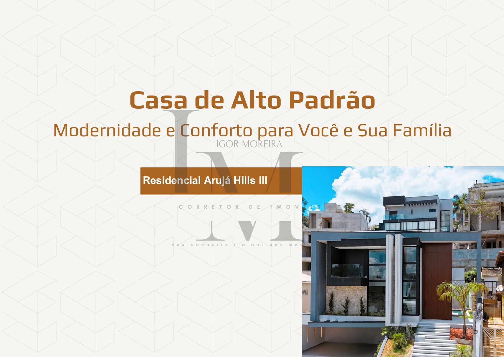 Os terrenos espaçosos e as casas de alto padrão construídas no Arujá Hills 3 oferecem ambientes amplos, integrados e com acabamento de qualidade, muitos com áreas gourmet, piscinas privativas, vistas naturais e soluções arquitetônicas modernas — ideais para transformar seus sonhos em realidade.