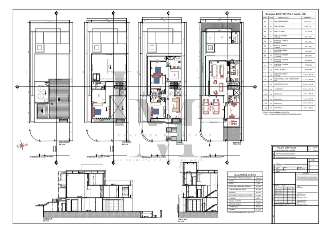 Terreno: 250m², com 369,35m² de construção com o projeto, sendo, Pav. Superior 84,18m², Térreo 139,07m² e Subsolo 146,10m².